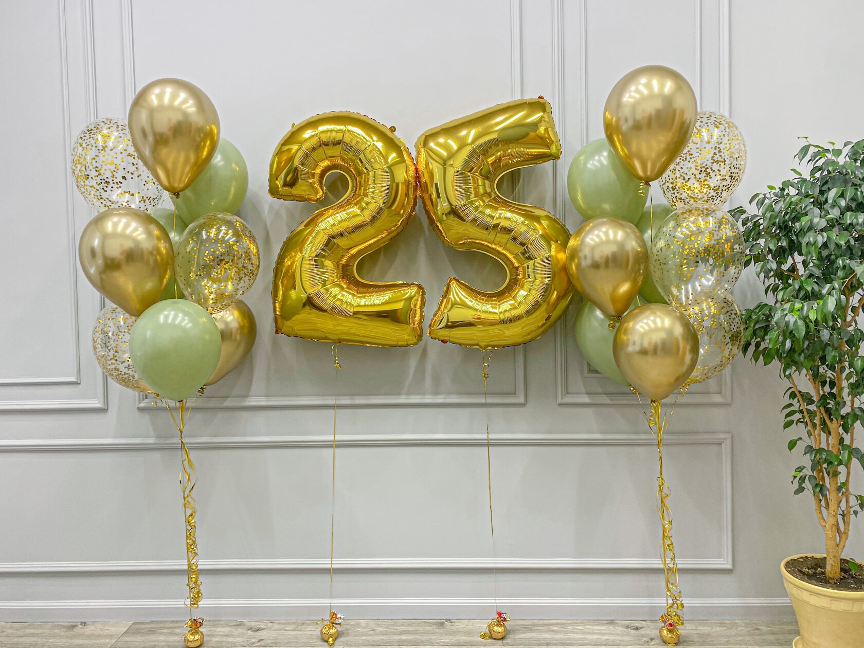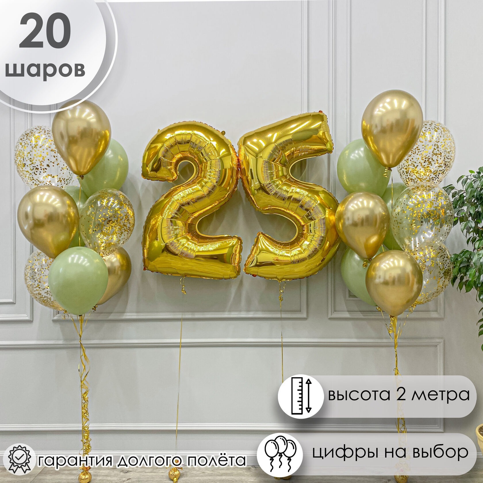 Фольгированные цифры 25 золото на грузиках.