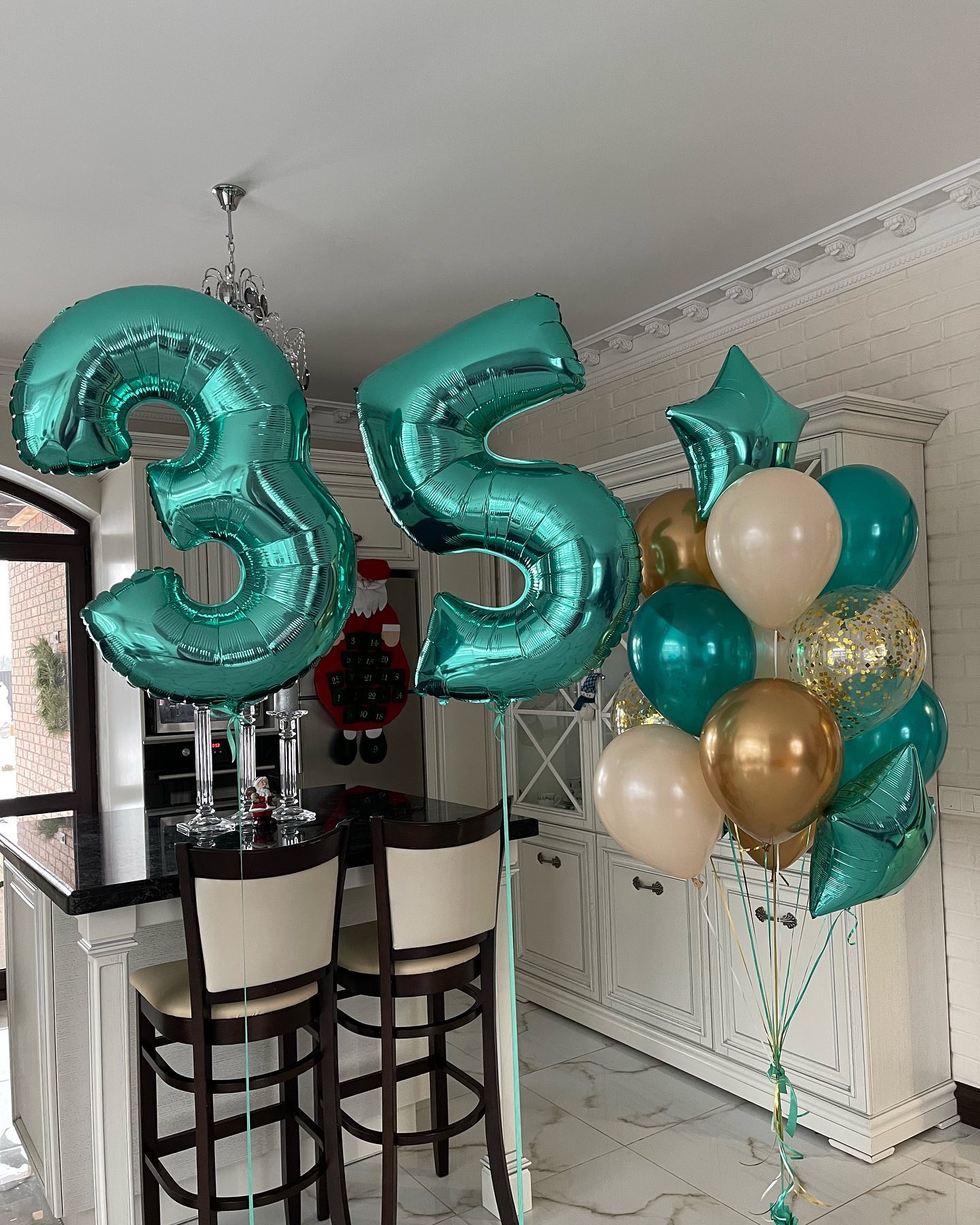 Фольгированные цифры 35 тиффани на грузиках.