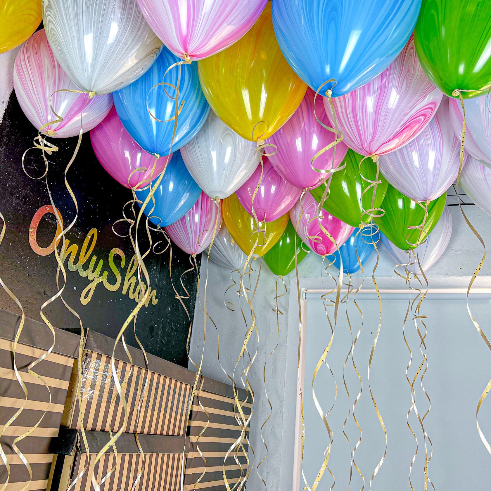 Разноцветные шары под потолок с надписью "С Днем Рождения"