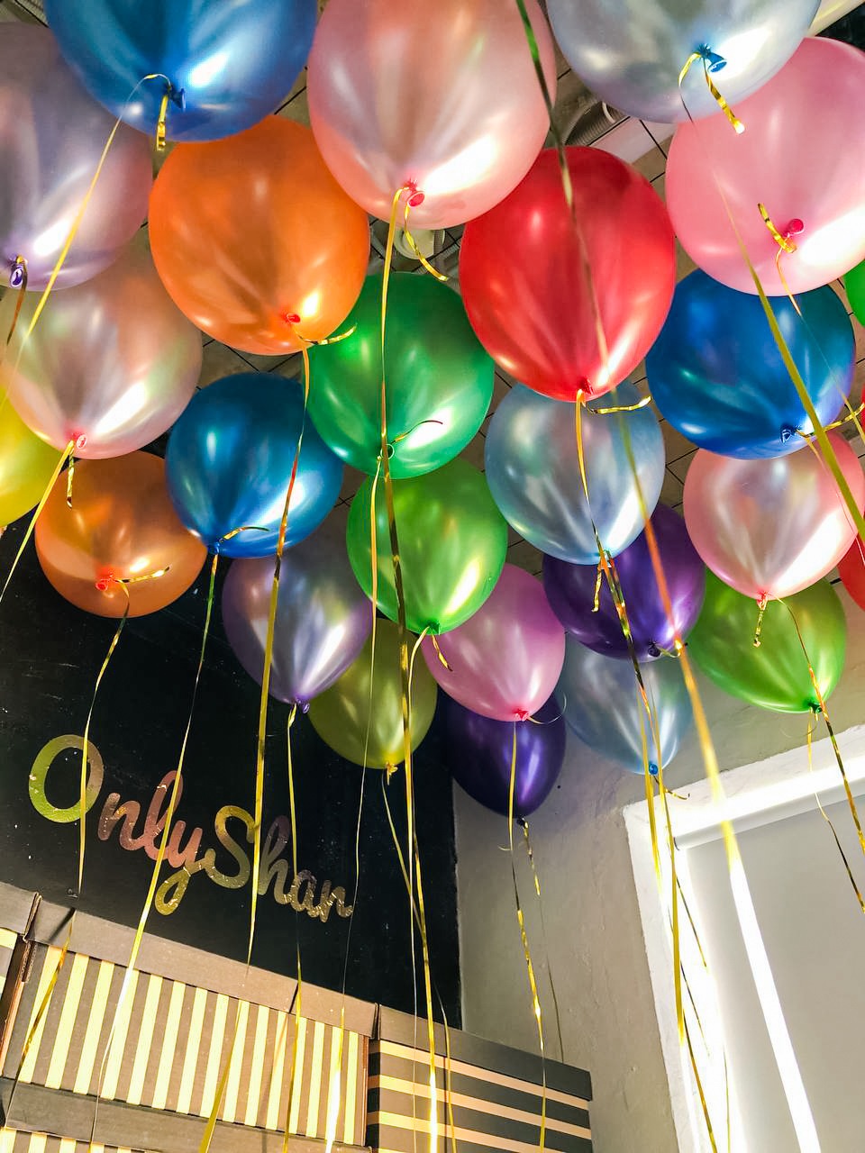 Разноцветные шары под потолок с надписью “С Днем Рождения”
