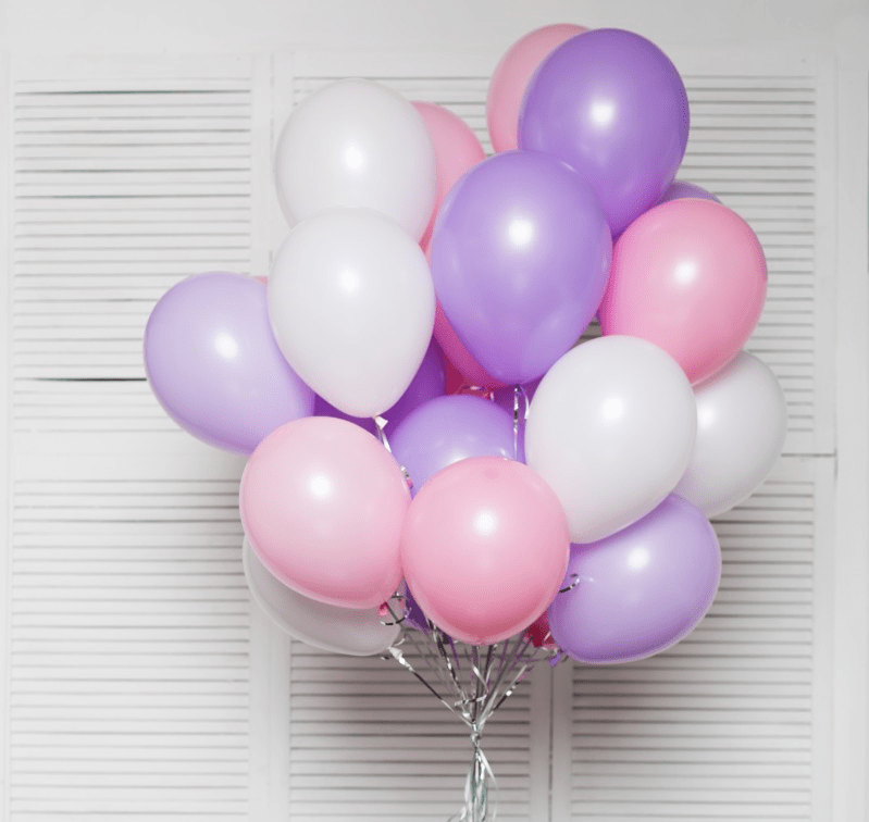 Шары под потолок: белые, нежно-розовые, сиреневые