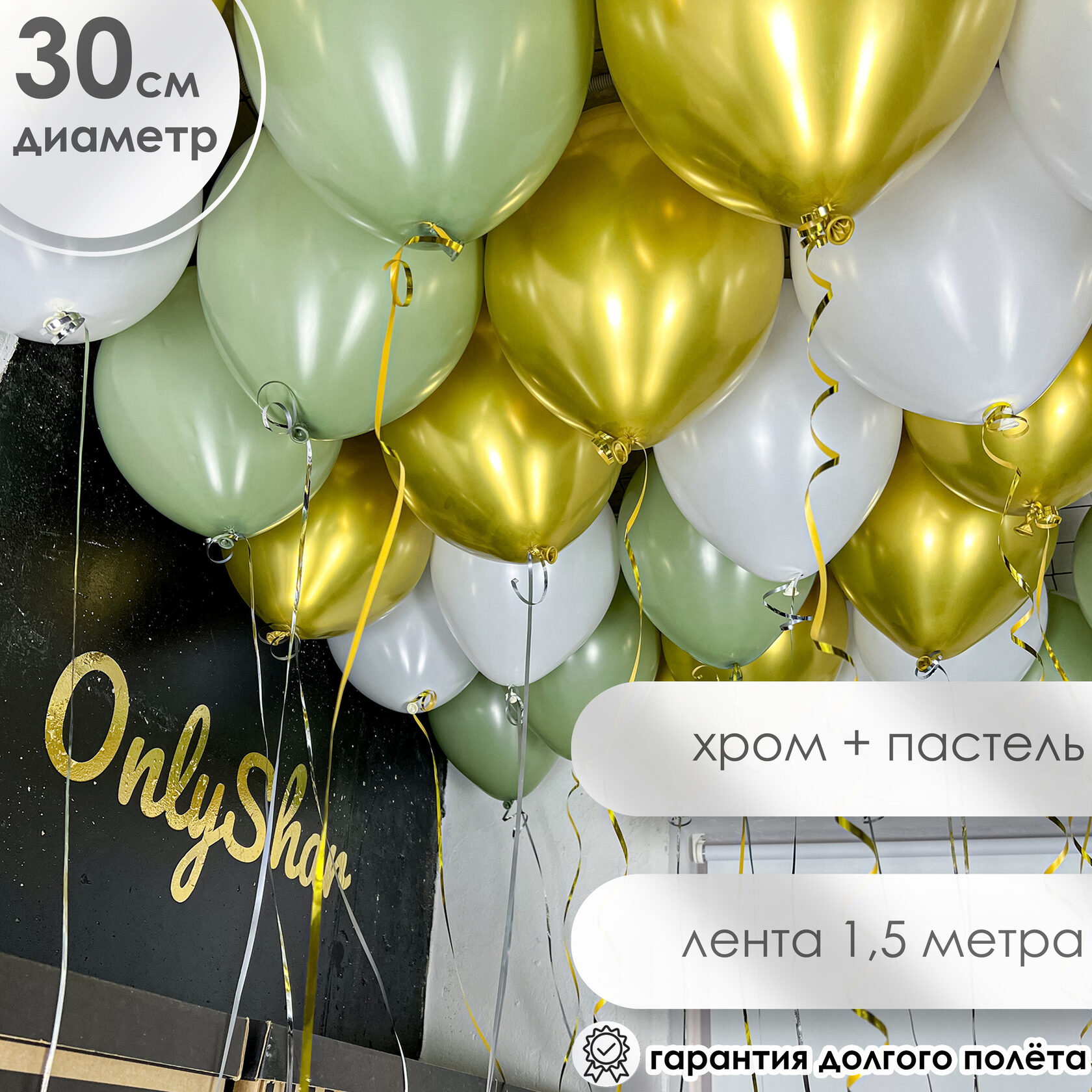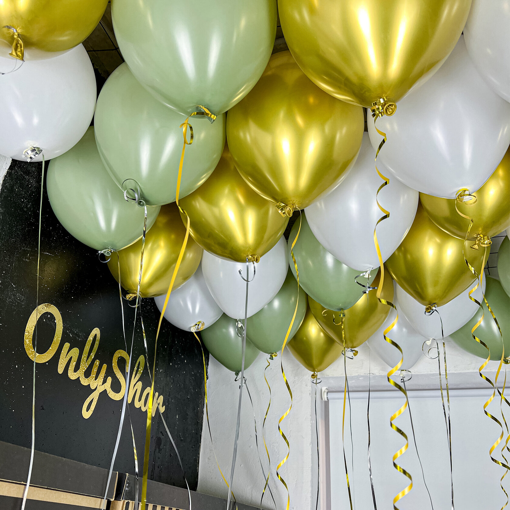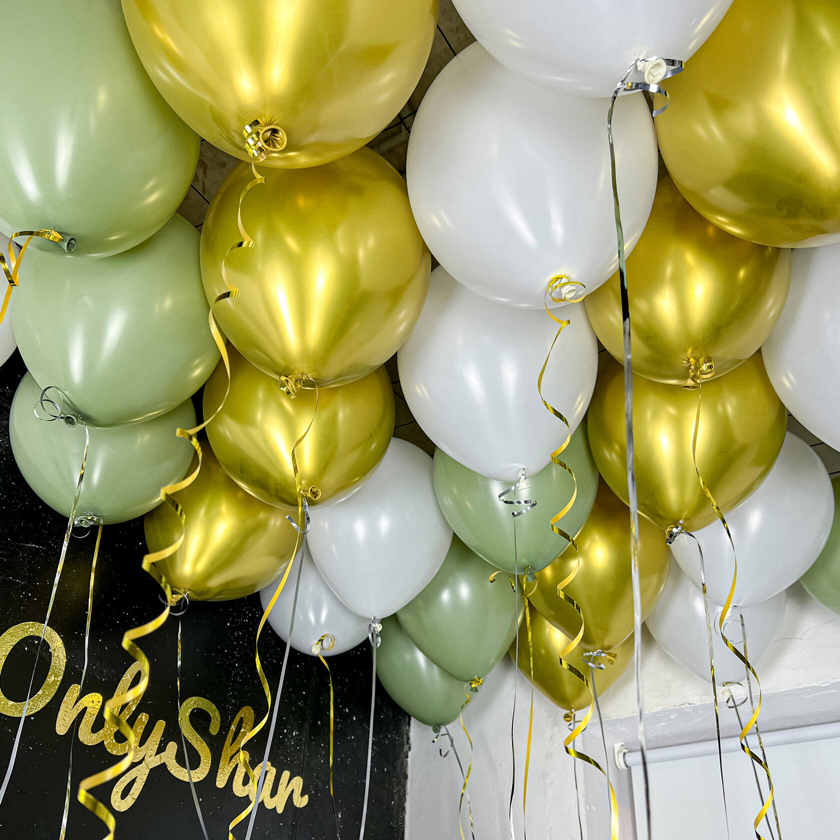 Шары в голубом, белом и розовом цвете с атласной лентой