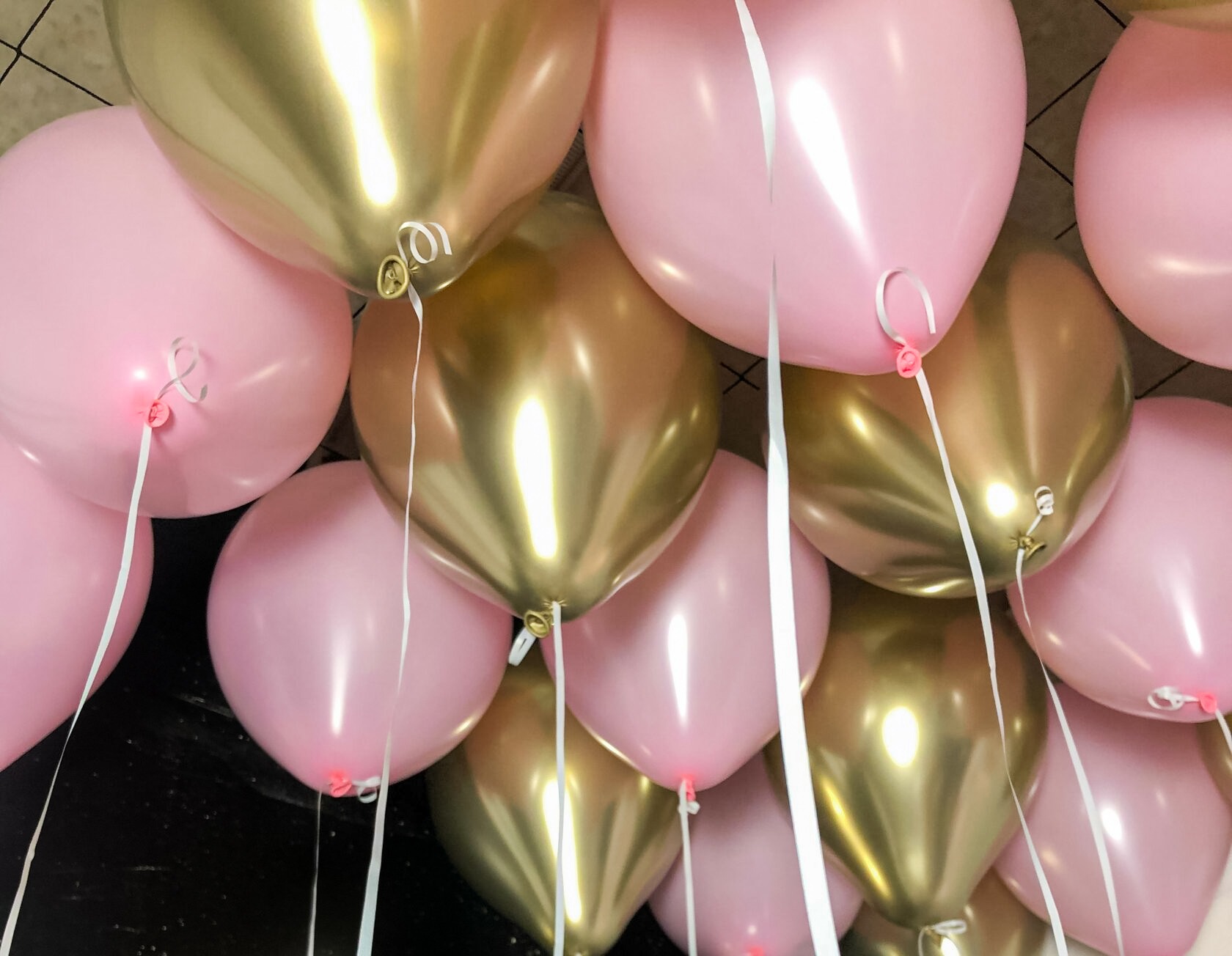 Шары под потолок – хром золото и розовый пастель: создайте волшебство в воздухе!