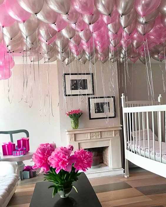 Шары под потолок: хром золото, розовый пастель