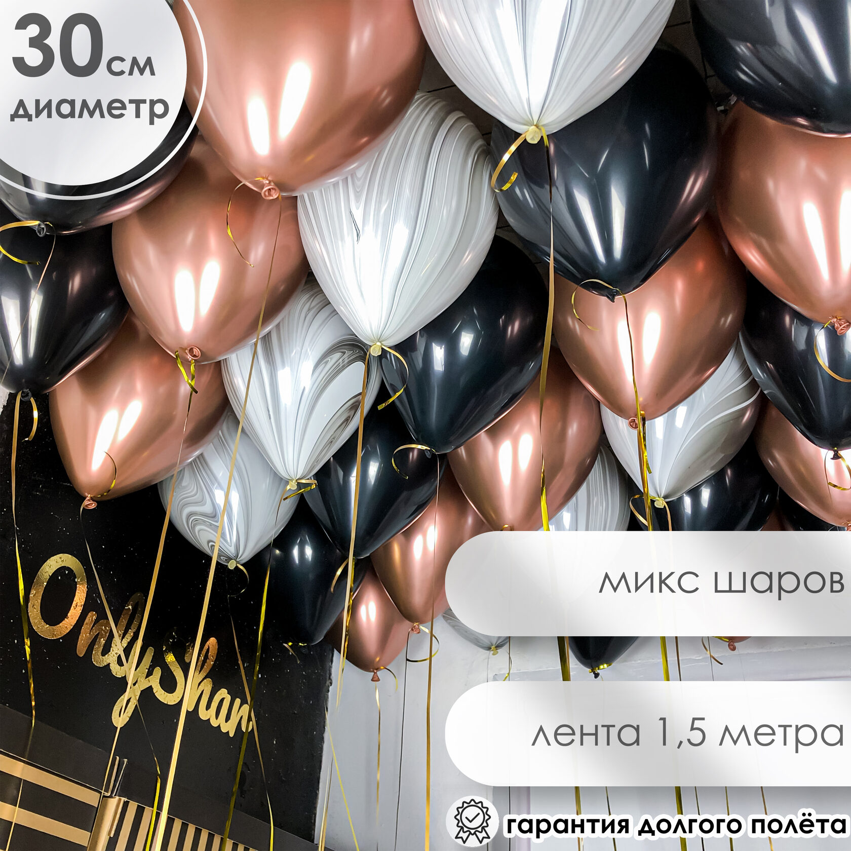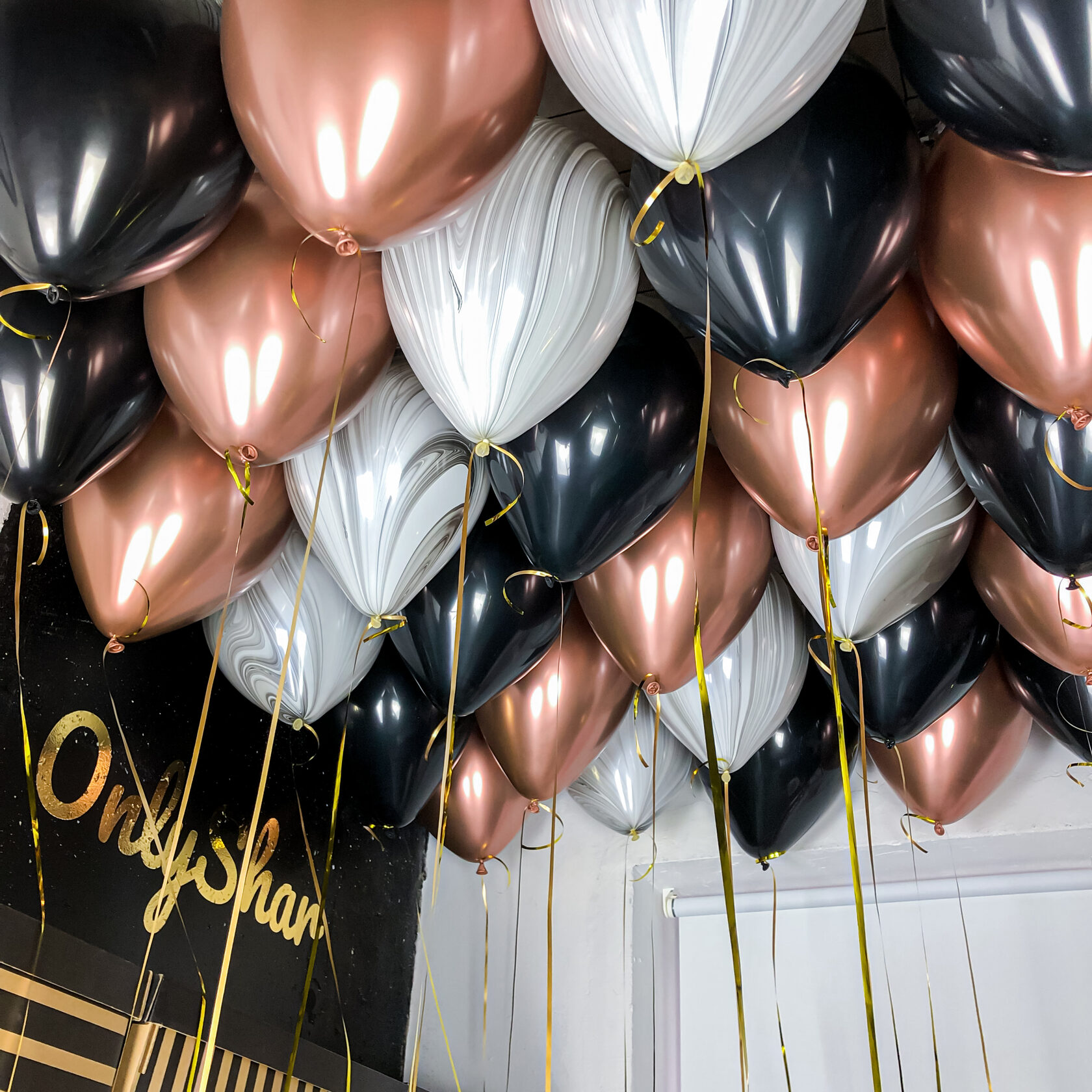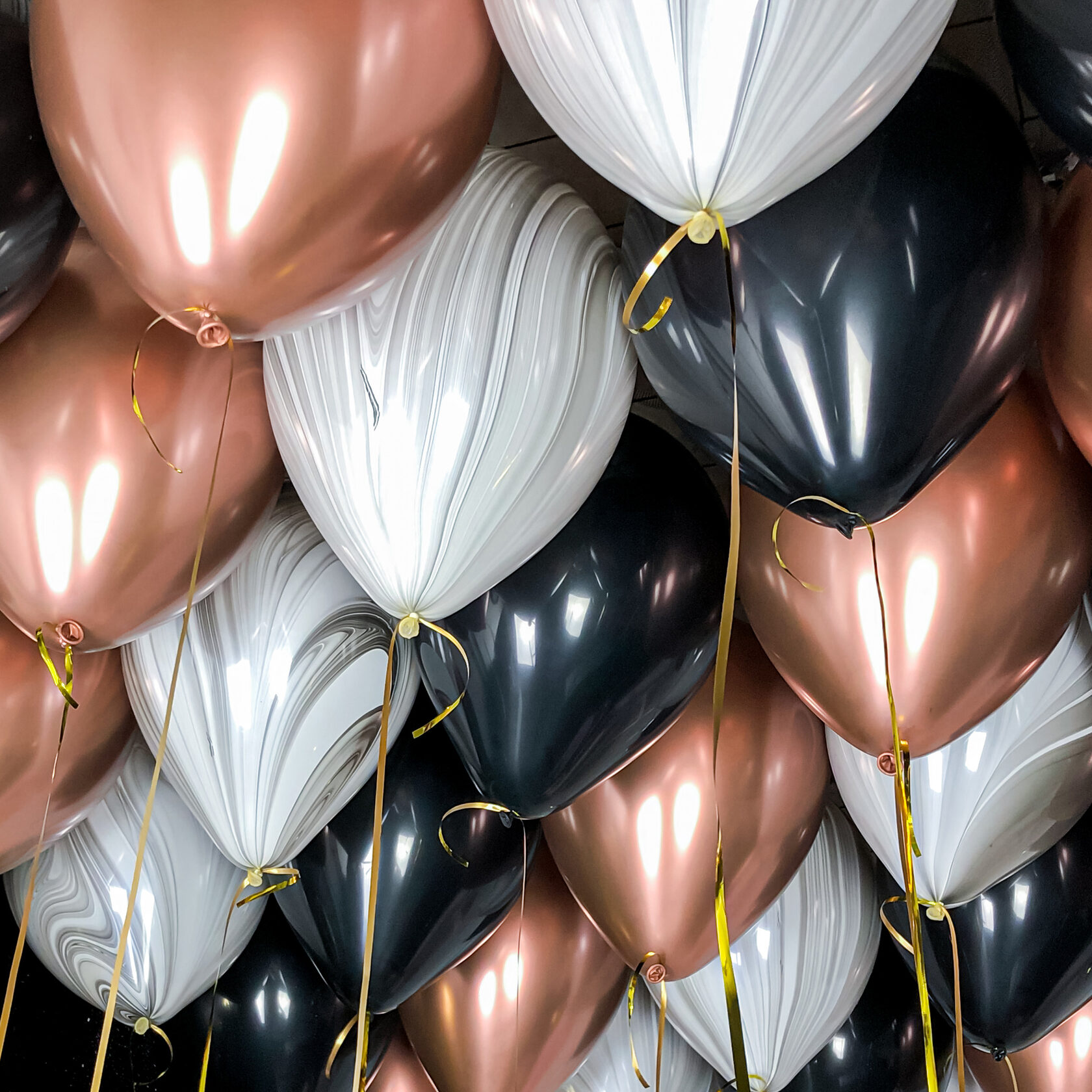 Шары под потолок: розовое золото хром,чёрный,агат серый
