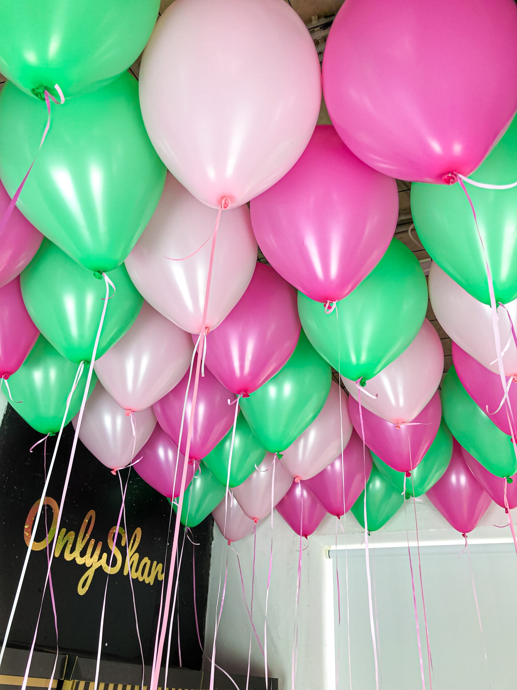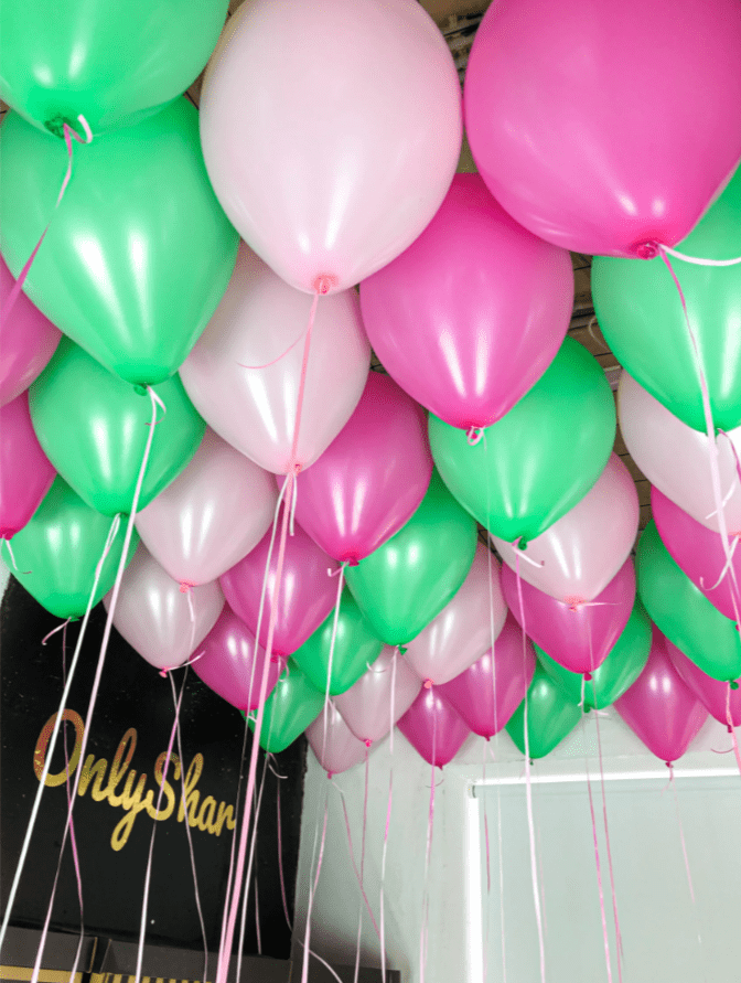 Шары под потолок: розовый, конфетти серебро, агат fashion