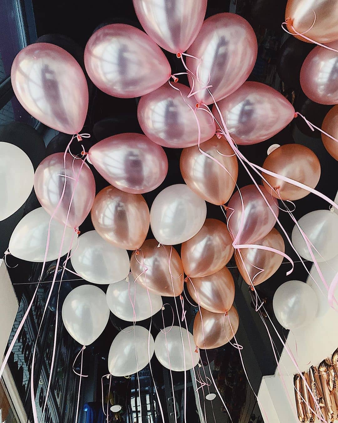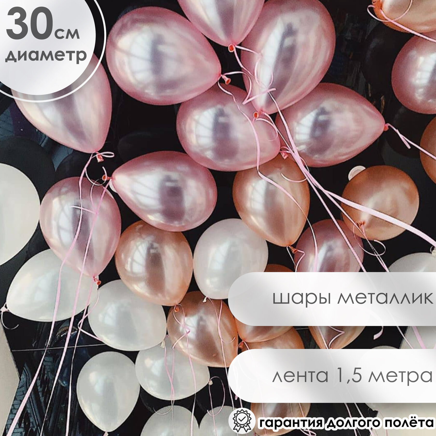 Шары под потолок: розовый металлик, розовое золото металлик, белый металлик