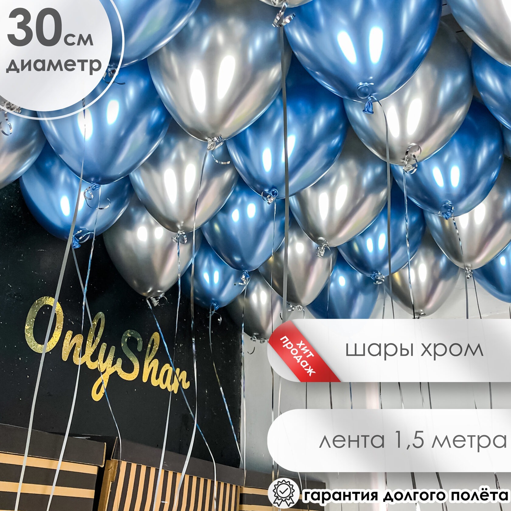 Шары в голубом, белом и розовом цвете с атласной лентой