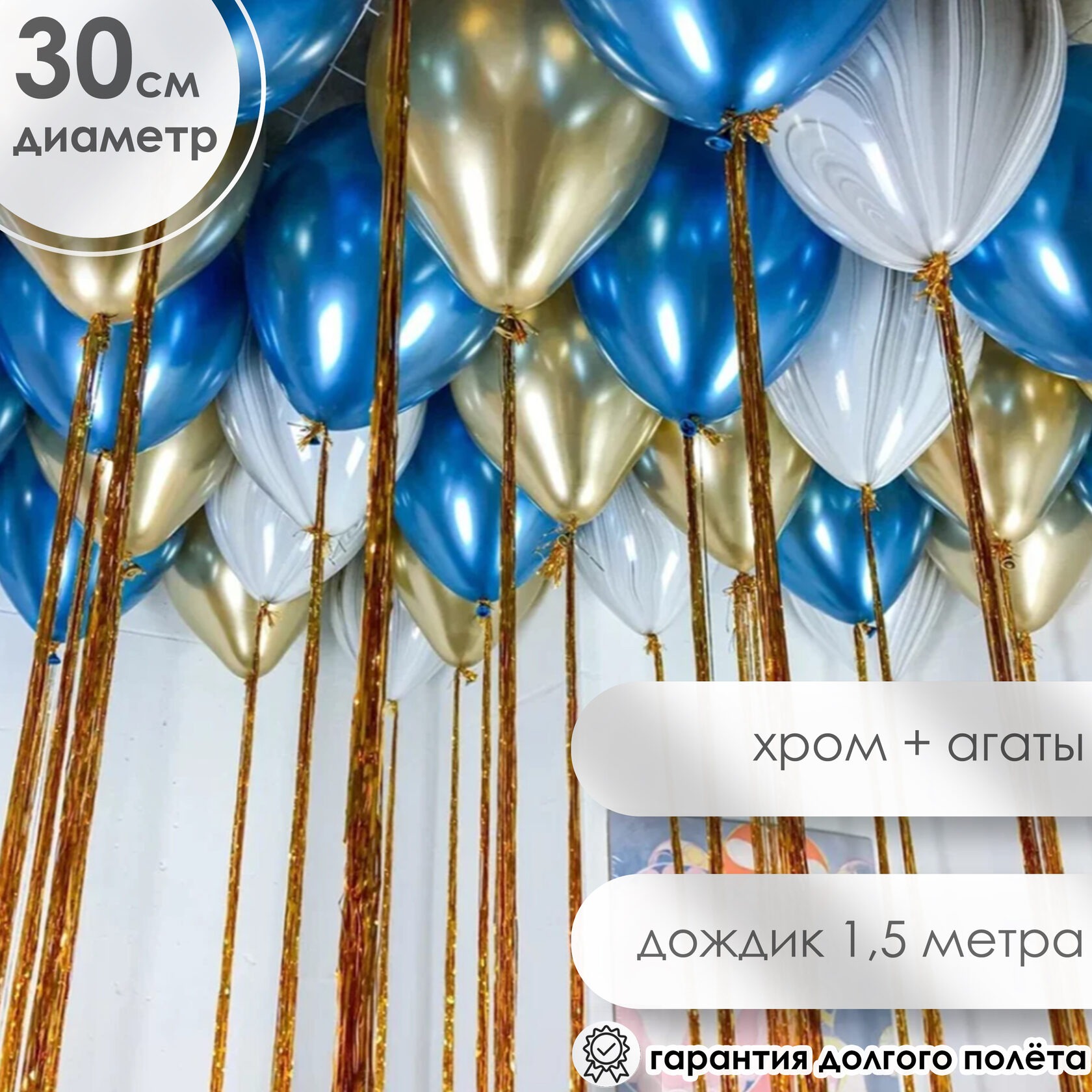 Шары под потолок: синий хром, золото хром,агат серый с дождиком золото