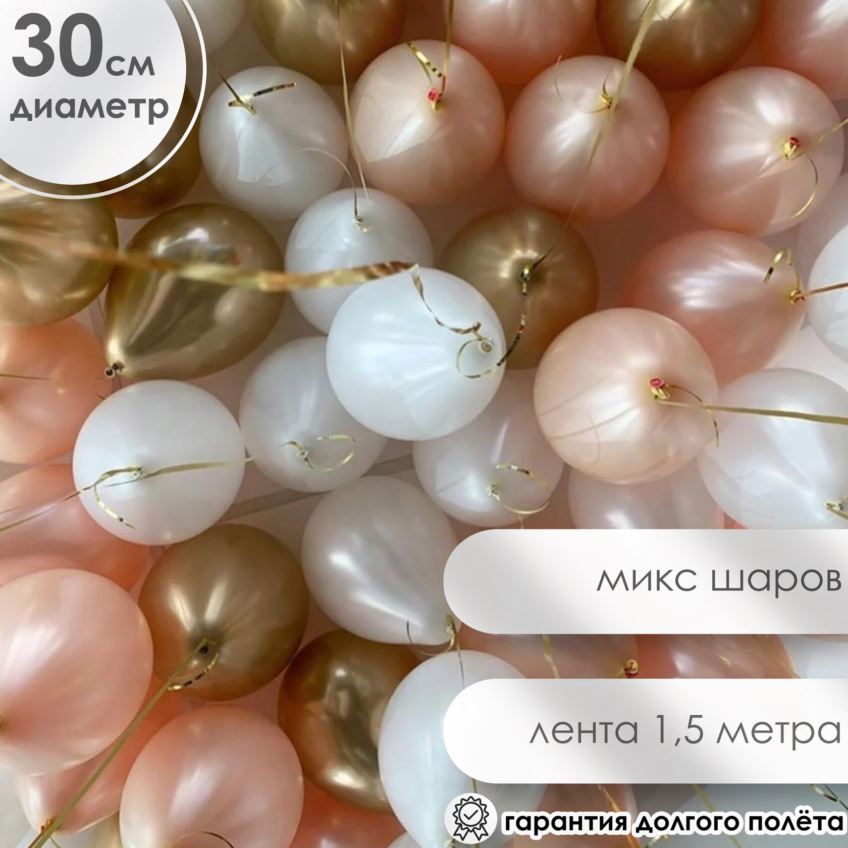 Шары под потолок: золото хром, белый, персиковый