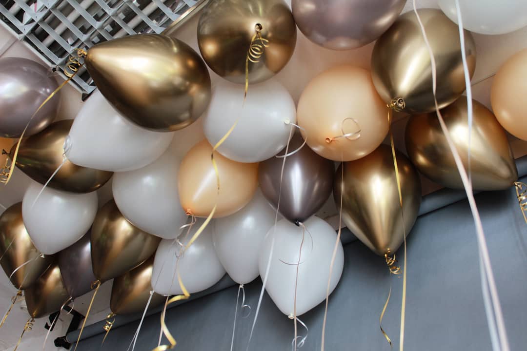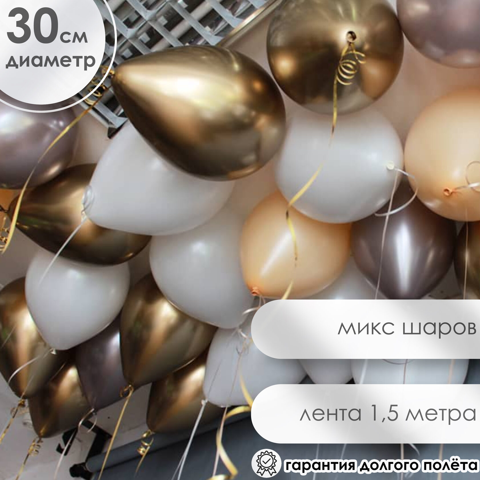 Шары под потолок: золото хром, серебро хром, персиковый, белый