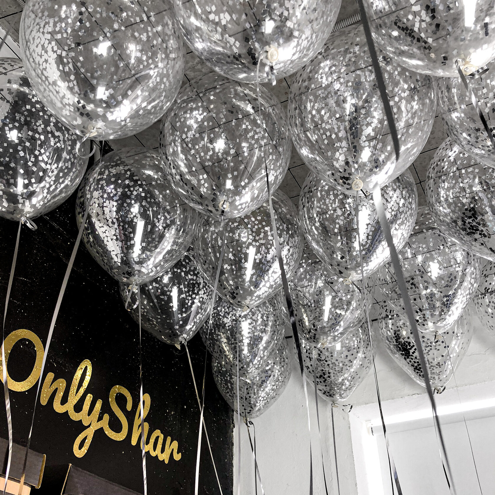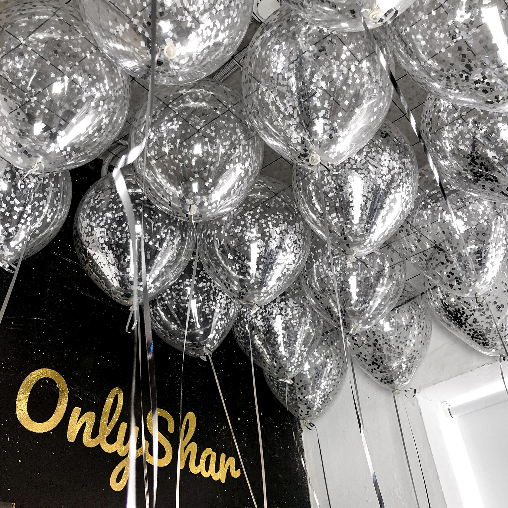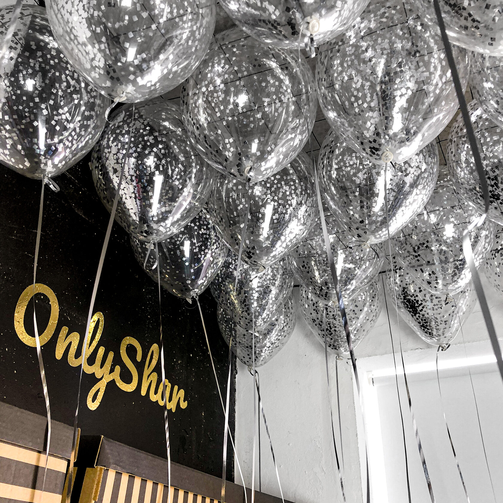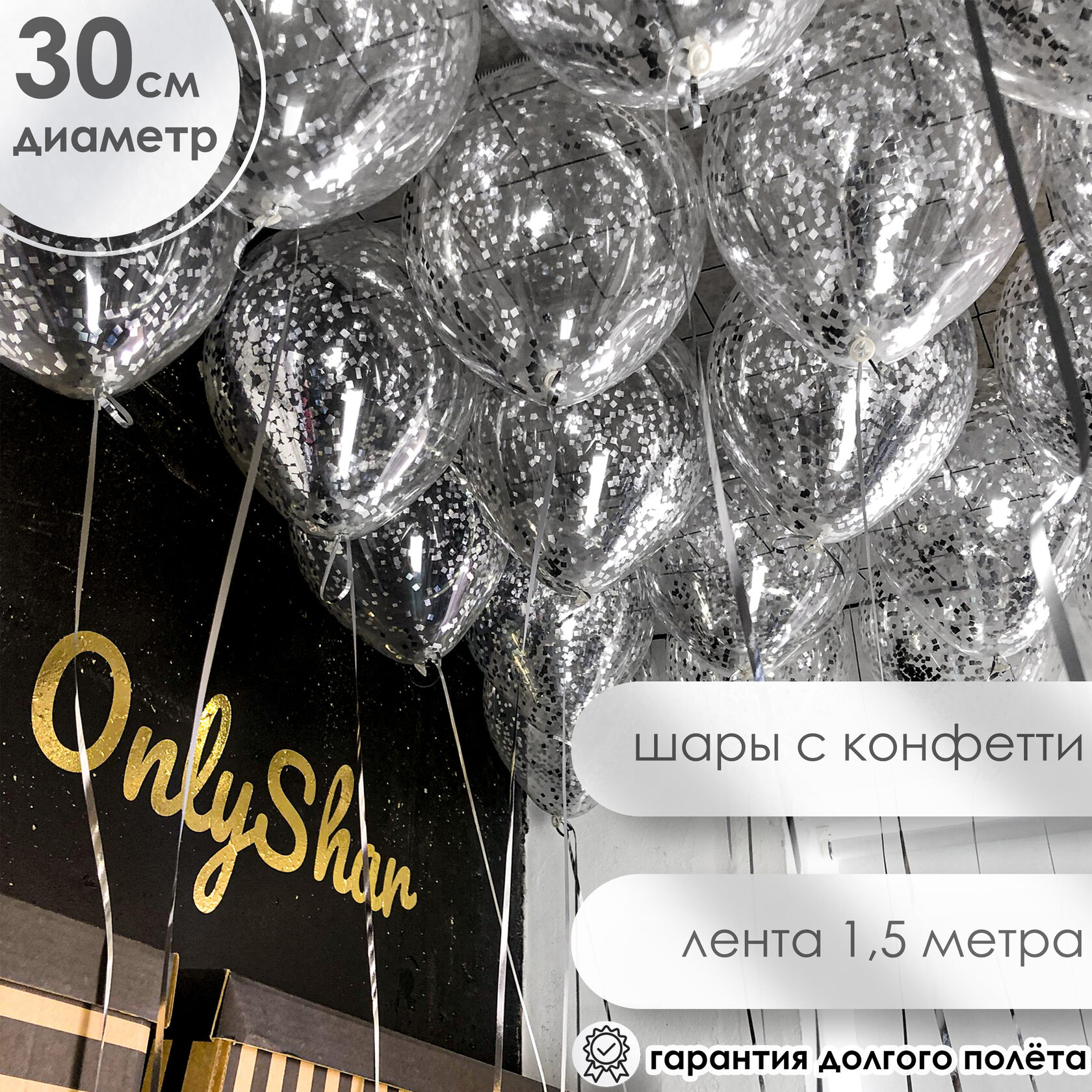Шары под потолок:конфетти серебро