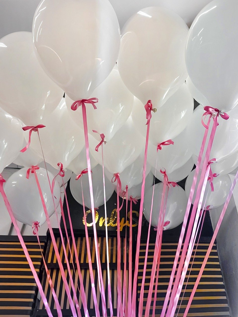 Шары под потолок: белый, розовый, золото хром