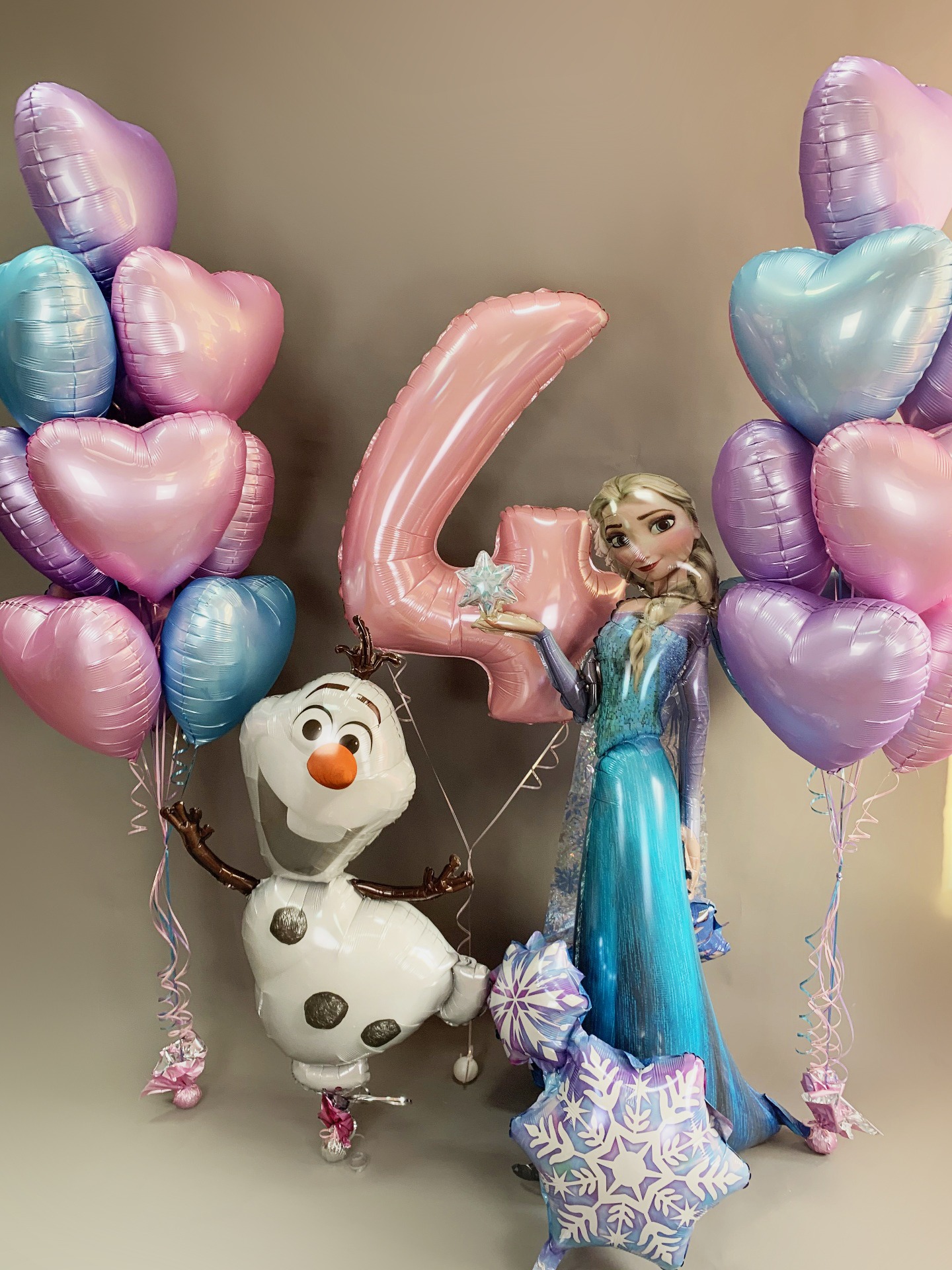 Шары-сердца с фигурами “Холодное сердце” и цифрой