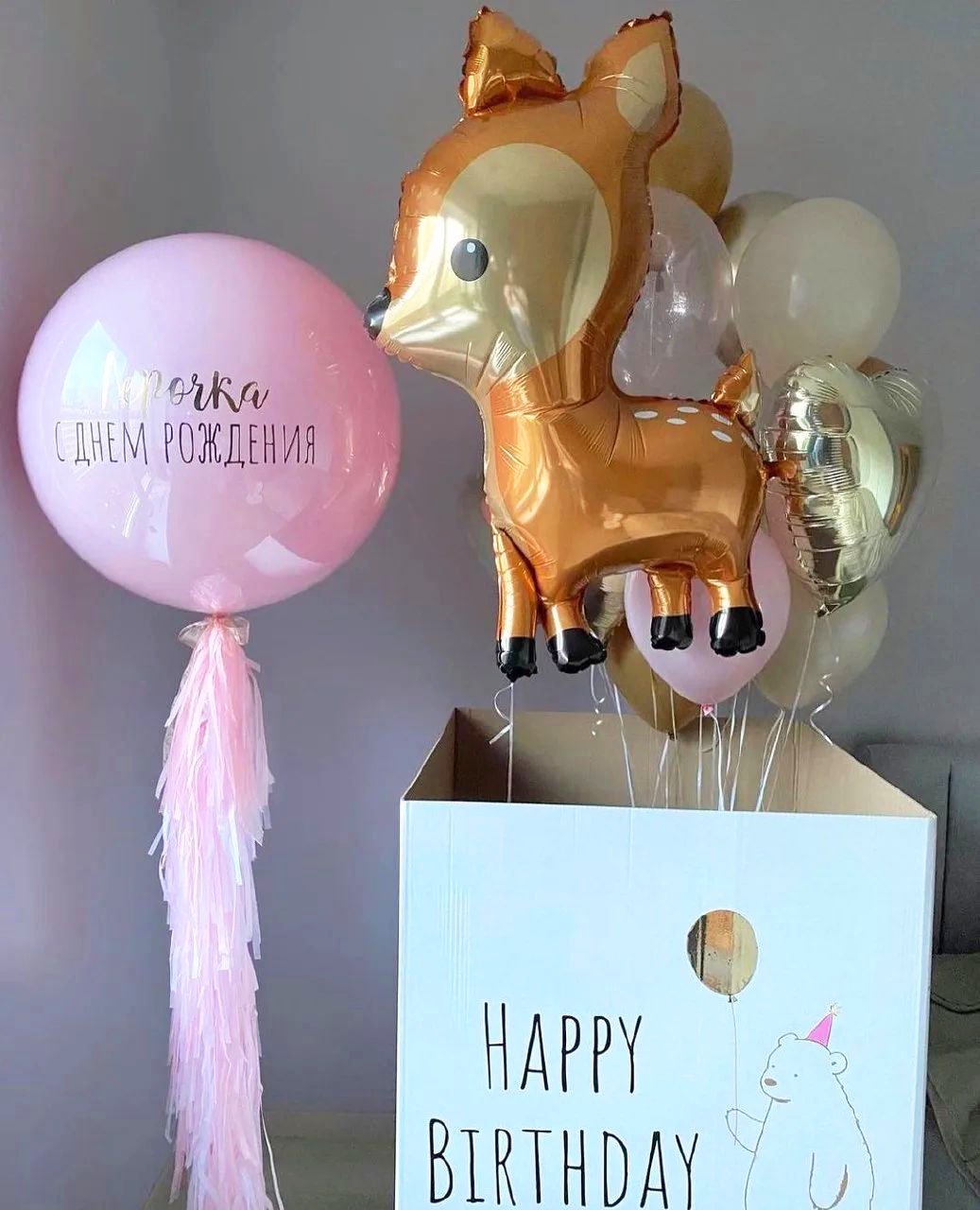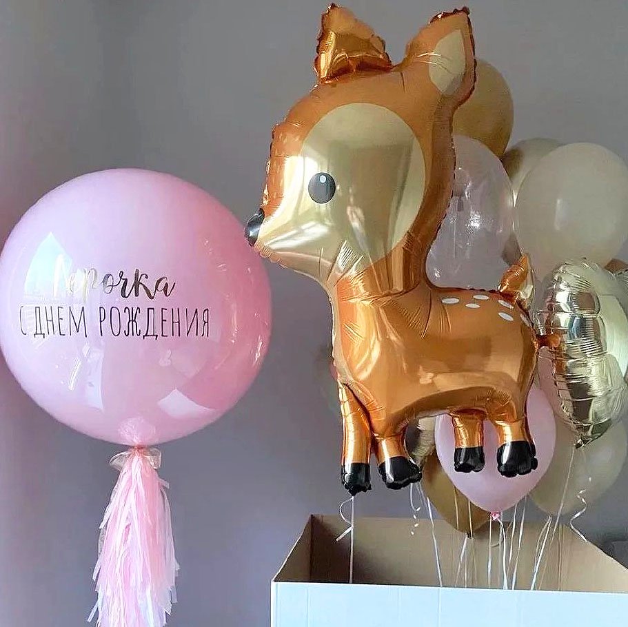 – Большой розовый шар с индивидуальной надписью и с розовым тасселом