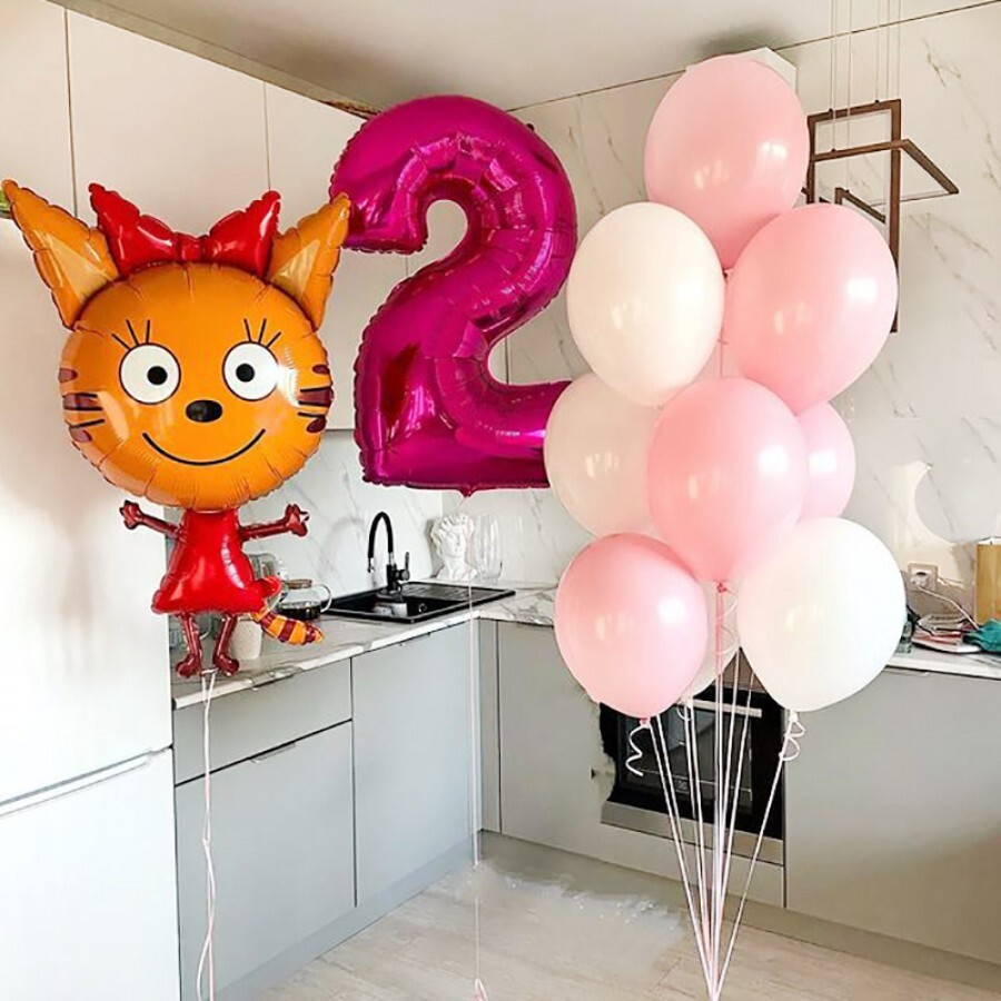 Шары в стиле “Три кота” на 2 года в белом и розовом цвете