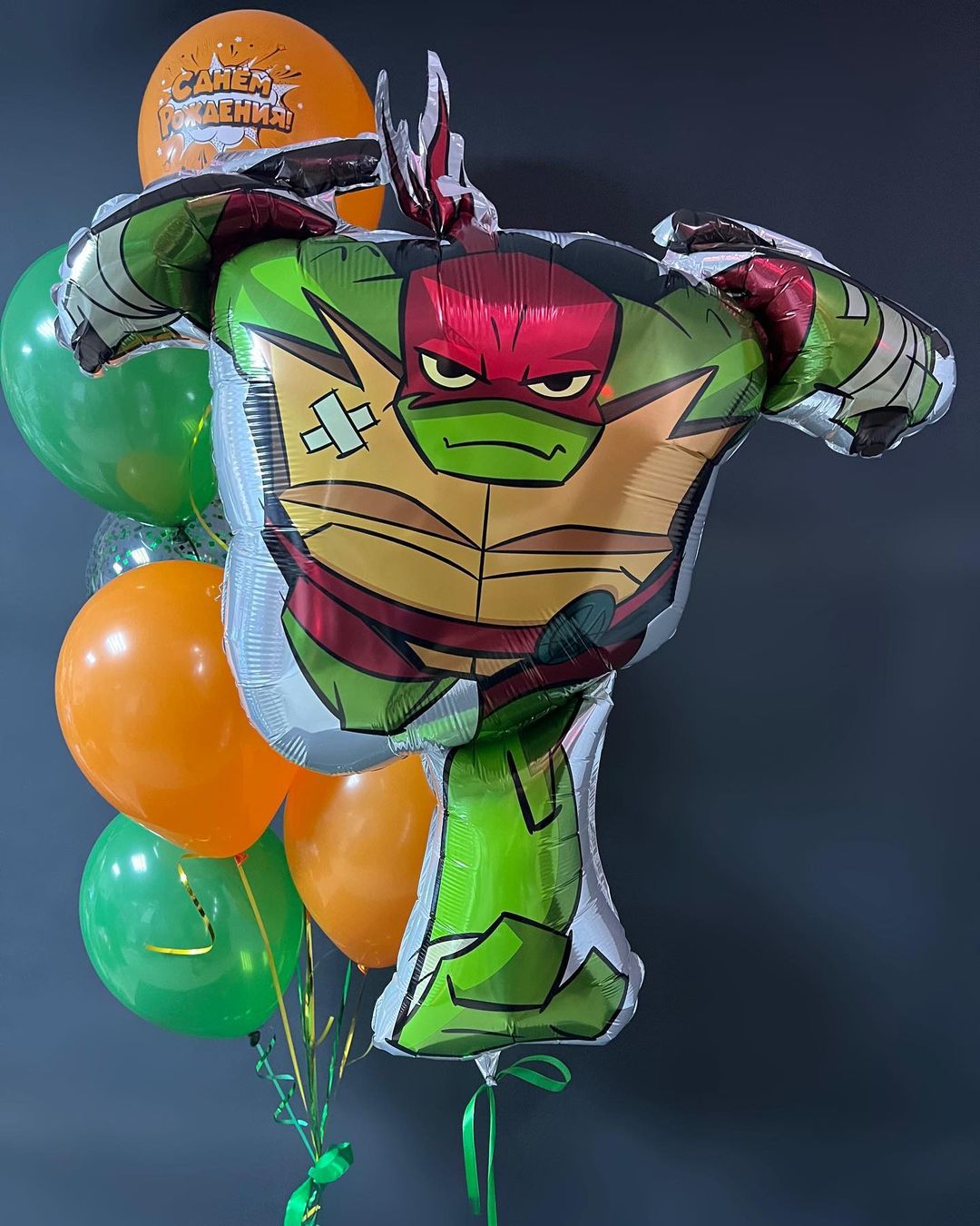 Шары в зеленом и оранжевом цвете в стиле “Черепашки-ниндзя”