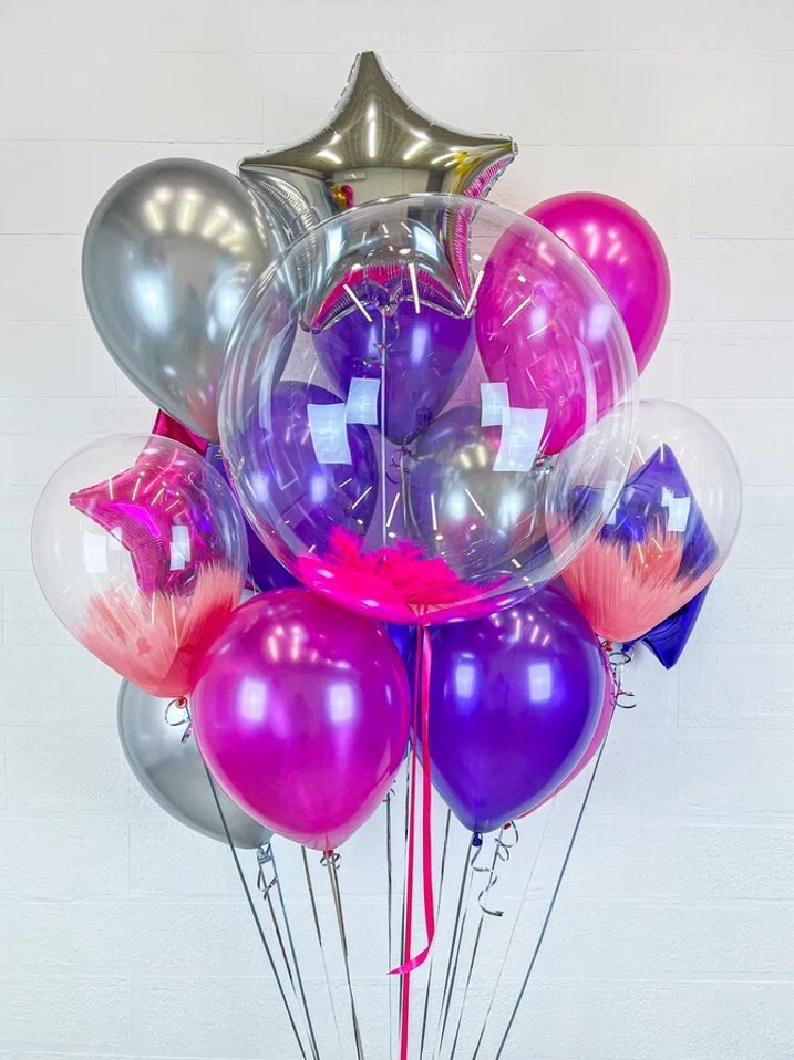 -шар баблс + перья фуксия – 1 шт.