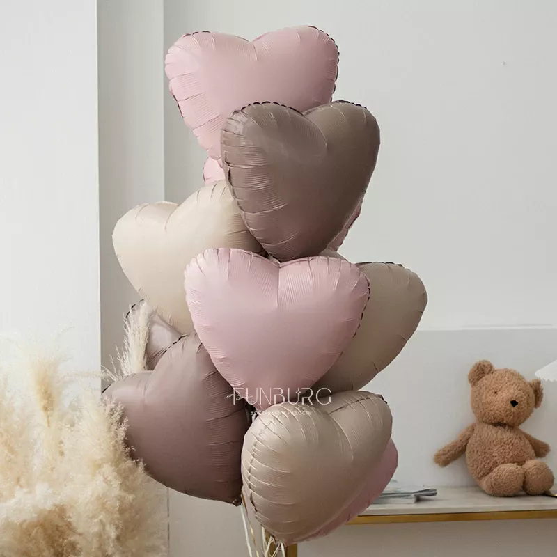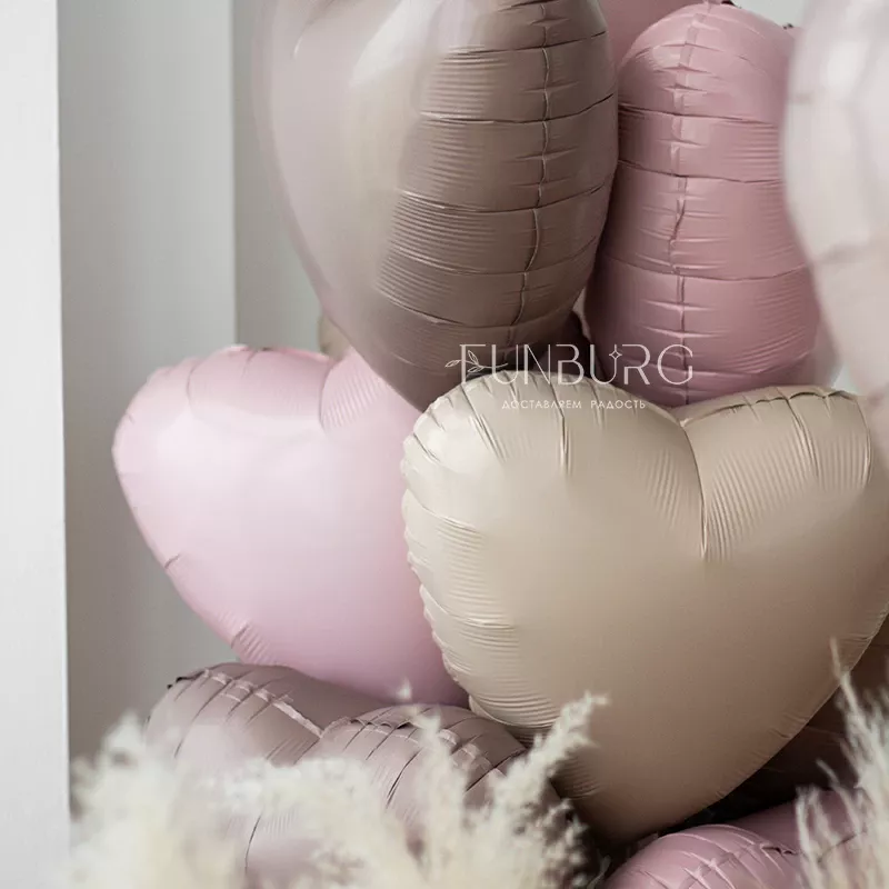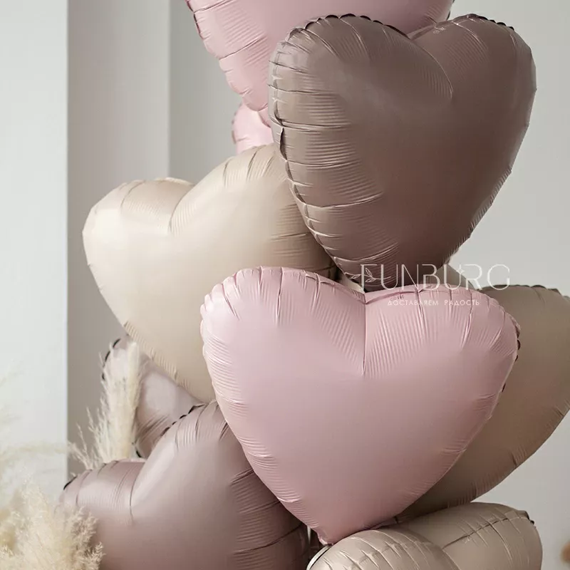 Небольшая гармоничная связка из сердец мягких и нежных оттенков кремового, шоколадного и розового, перевязанная для завершенности и особого шарма атласными лентами, отлично подойдет для подарка самым любимым и лаконичного украшения пространства для особенных случаев.
