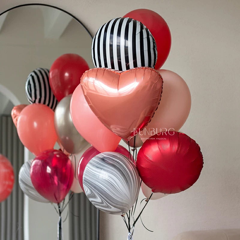Волшебная с шариков в нежнейших, будто мягко перетекающих один в другой матовых и глянцевых оттенков пудрового и кремового, с завораживающим шаром Bubble с перьями цвета шампань и конфетт-сердечкам. Гармоничное сочетание разных текстур, тонкие тягучие цветовые переходы, лаконичность, бесконечная нежность, и мягкость, этот набор создан для особенных и самых трогательных моментов.