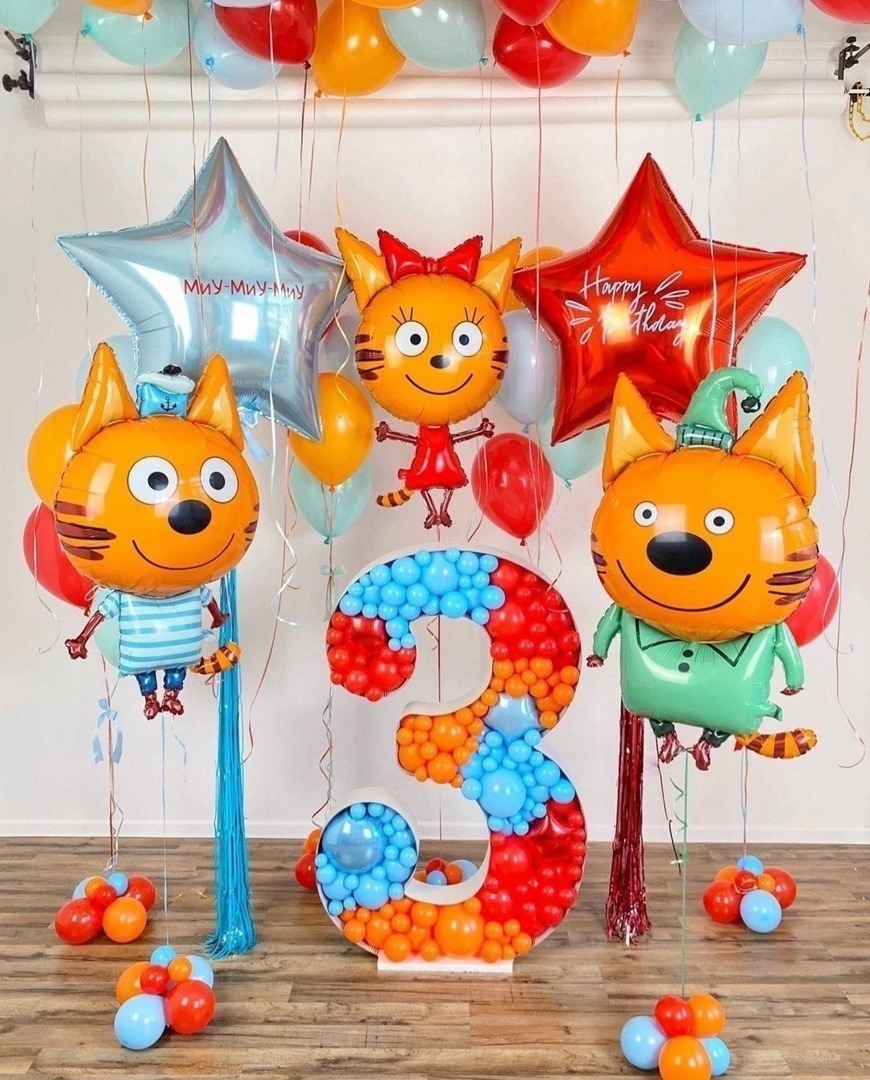 Украшение гелиевыми шарами “Три кота” с цифрой аэромозайка