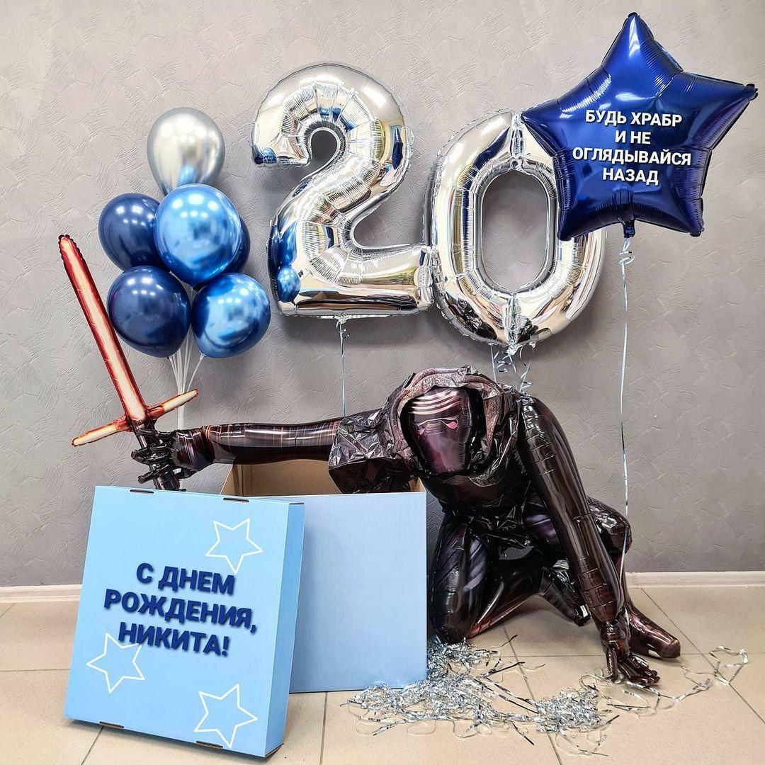 Фольгированная звезда синяя 81 см с индивидуальной надписью