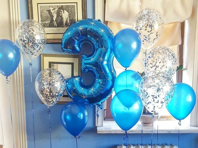 Воздушные шары синие с конфетти мальчику на три годика №15