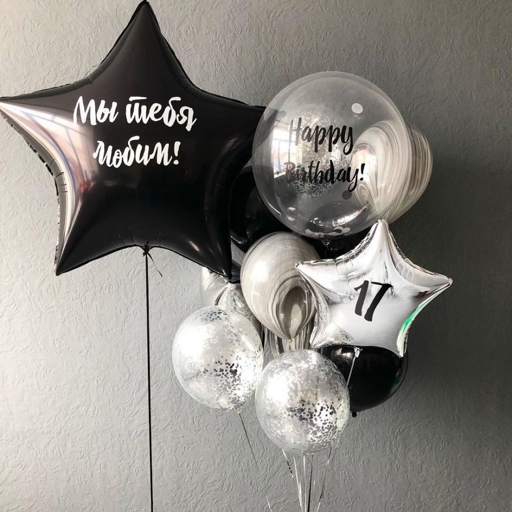 Воздушные шары в чёрном и серебряном цвете