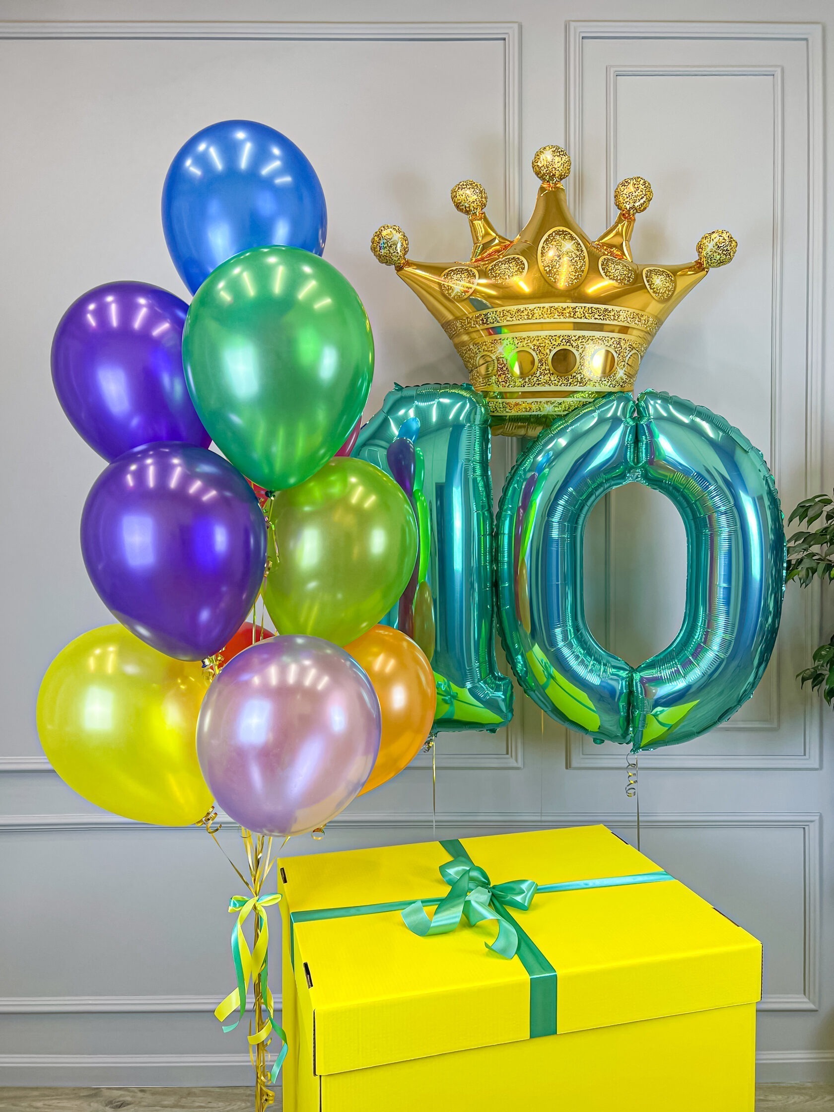 Фольгированные цифры 10 тиффани на грузиках.