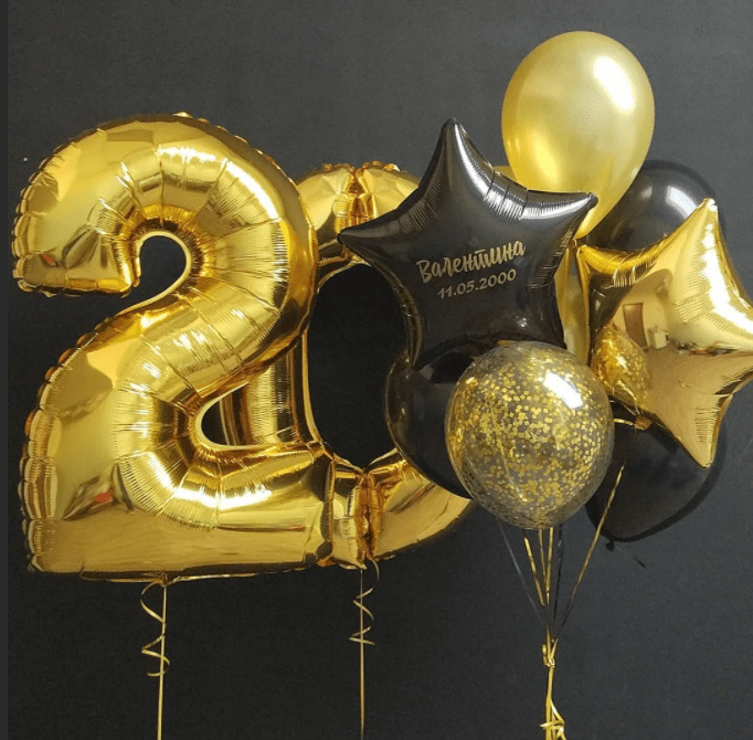 Золотая композиция из шаров парню на 20 лет