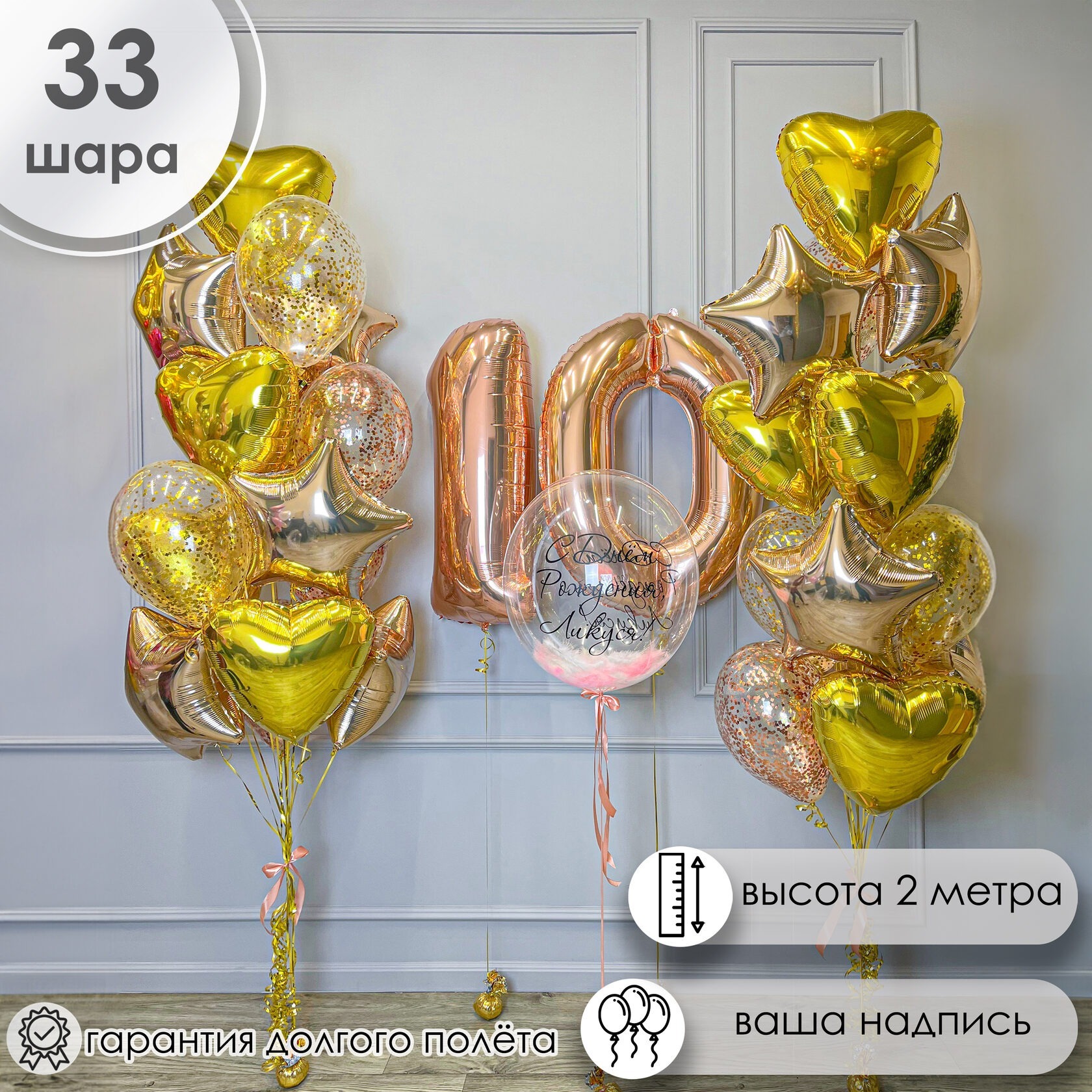 Золотые шары на 10 лет для девочки с индивидуальной надписью